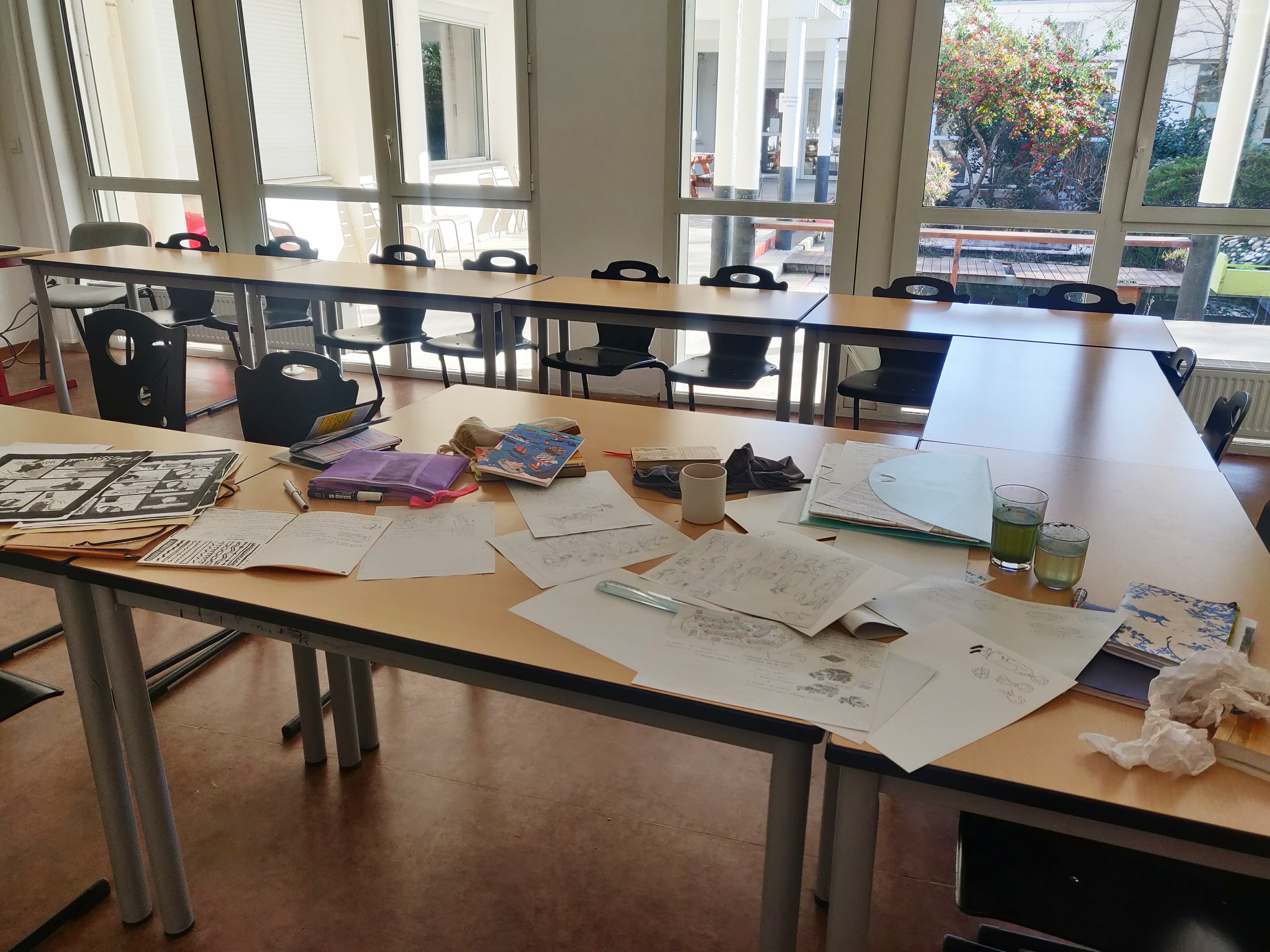 De janvier à avril : Je suis accueillie en résidence BD & fanzine par le collège Jean Rostand à Nîmes, grâce au Conseil Départemental du Gard. Elle se partage entre temps de rencontre avec les élèves et temps de création personnelle.