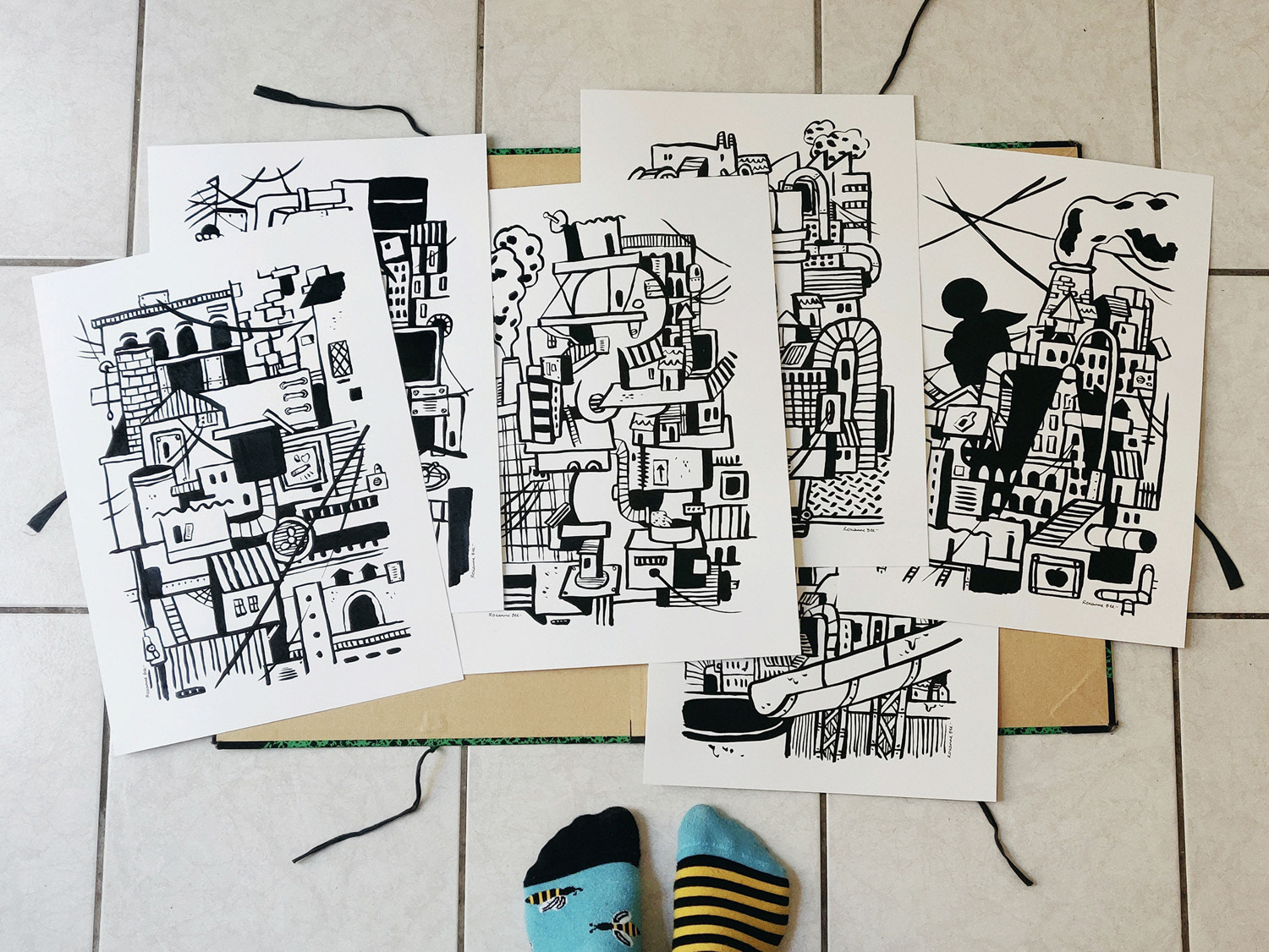 Série de 6 dessins format A3 (29,7 x 42 cm) réalisée en 2020