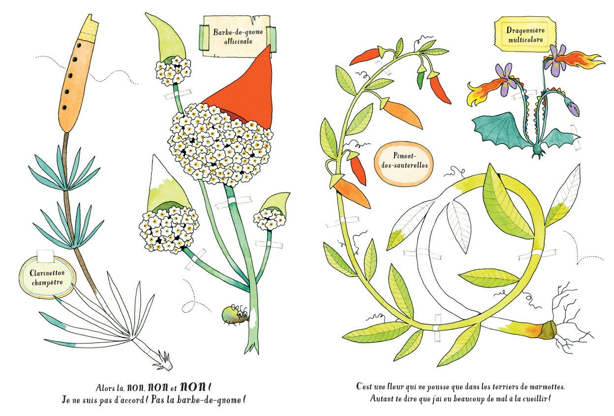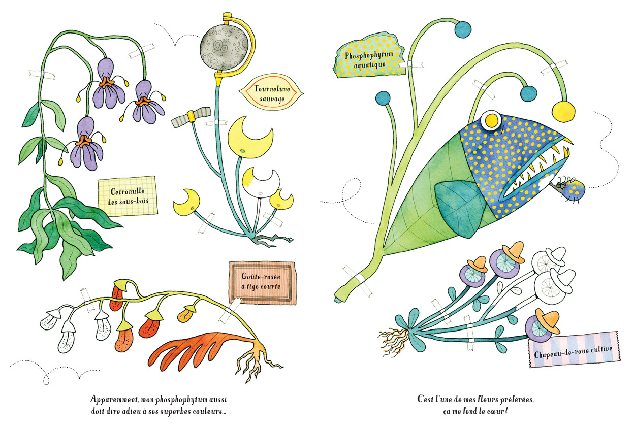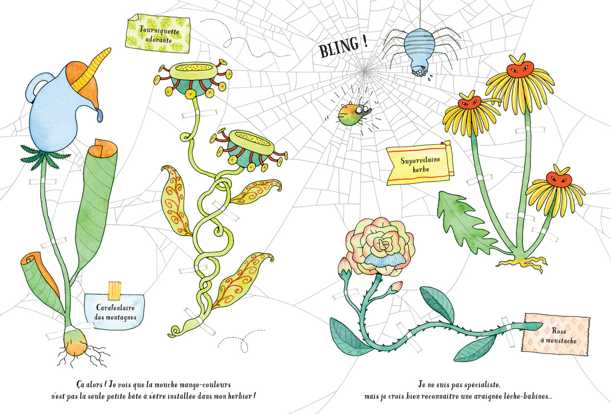Herbier imaginaire mettant en scène une petite mouche facétieuse...
